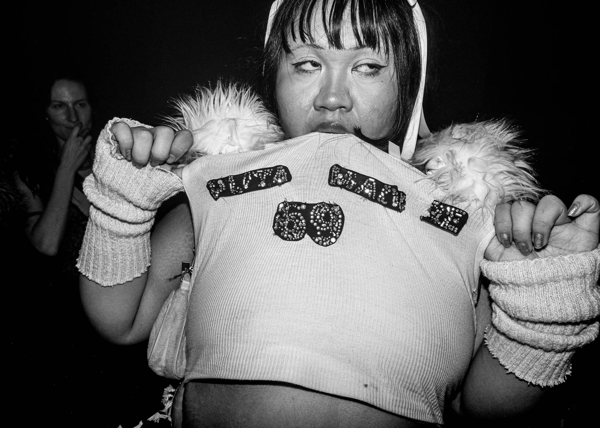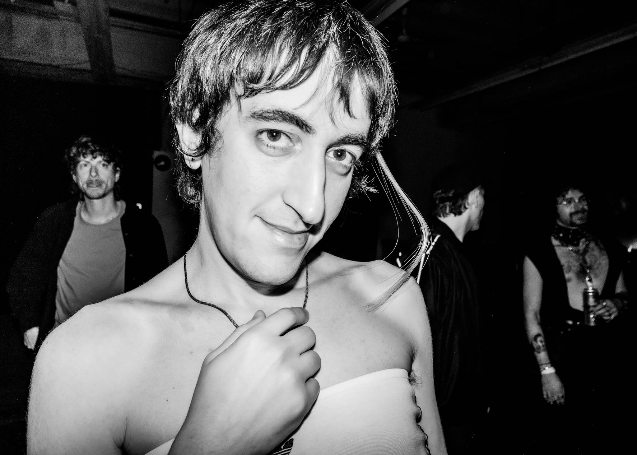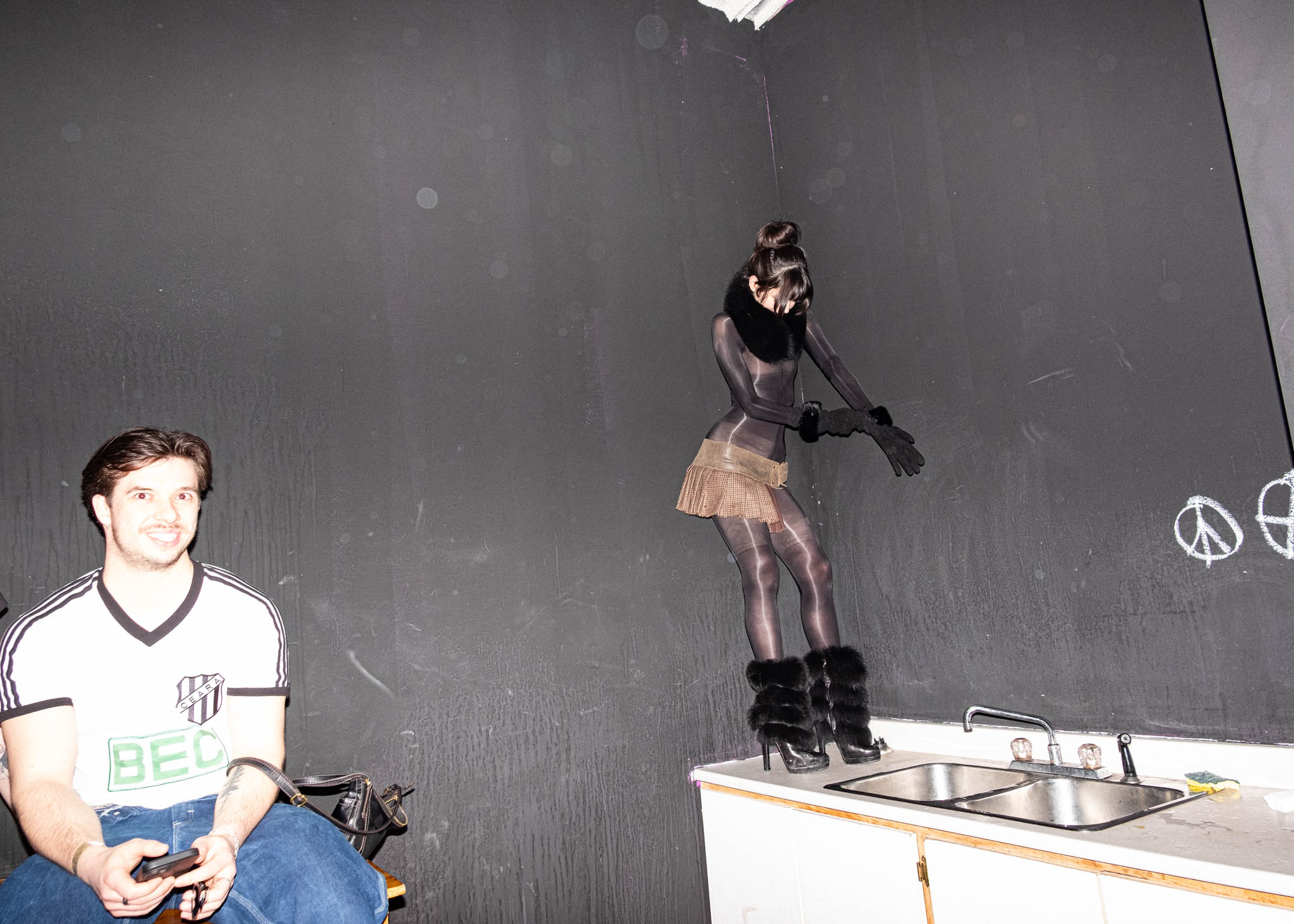 LX: My number one thing in life is always loving to make people laugh. Even when I’m being broken up with, I’ll crack a joke. This extends to my photographic practice. I love funny pictures. Of course I want everyone to look cool and fitted, but sometimes at a party, bad angles and coke noses are par for the course. I think it’s great when I can get the flatliners and folks on their phone in the corner, like catching the bad kids snapping bubble gum behind the school. Oppositely, people come up to me and ask me to do a whole glamour shoot for them and start posing like Tyra Banks, and they’ve got a broomstick from the supply closet as a prop, or they, like, start climbing a ladder. I think that’s awesome. There’s a photo I got at one of these parties where the composition makes this one dude look super miniature. He looks so tiny. I think it’s hilarious.