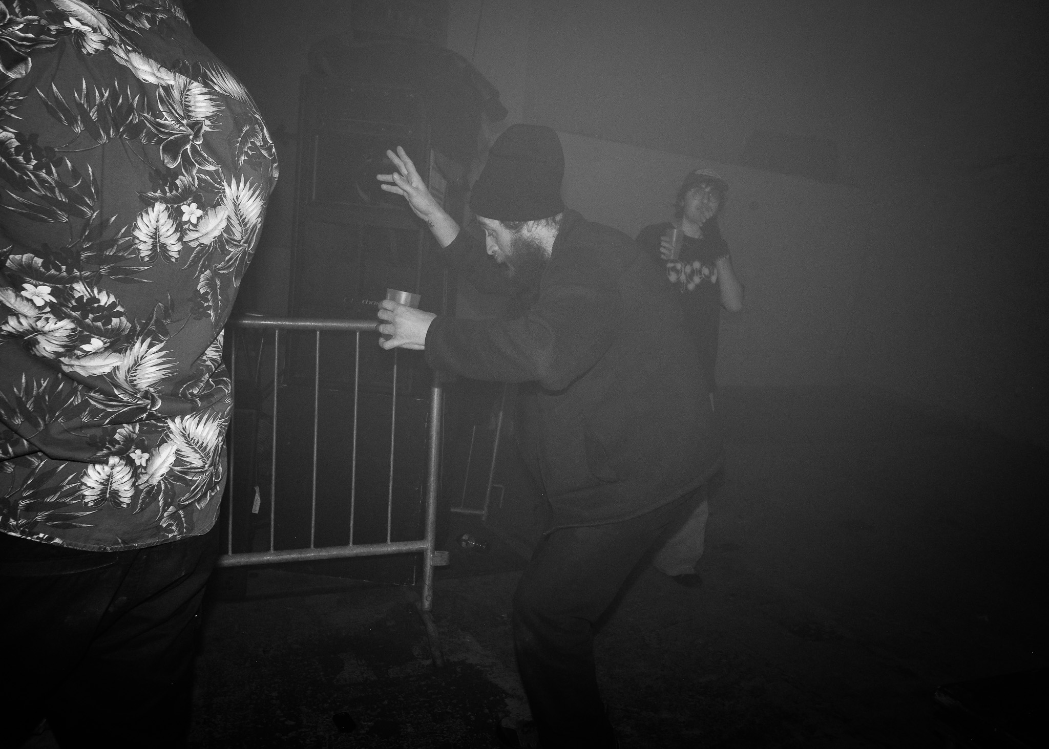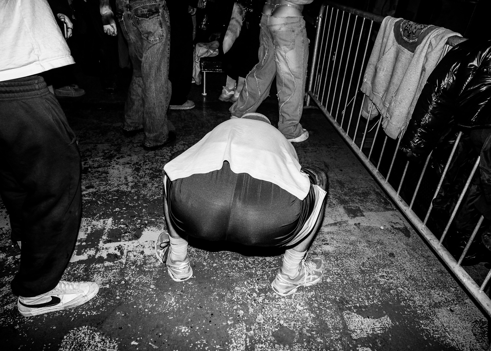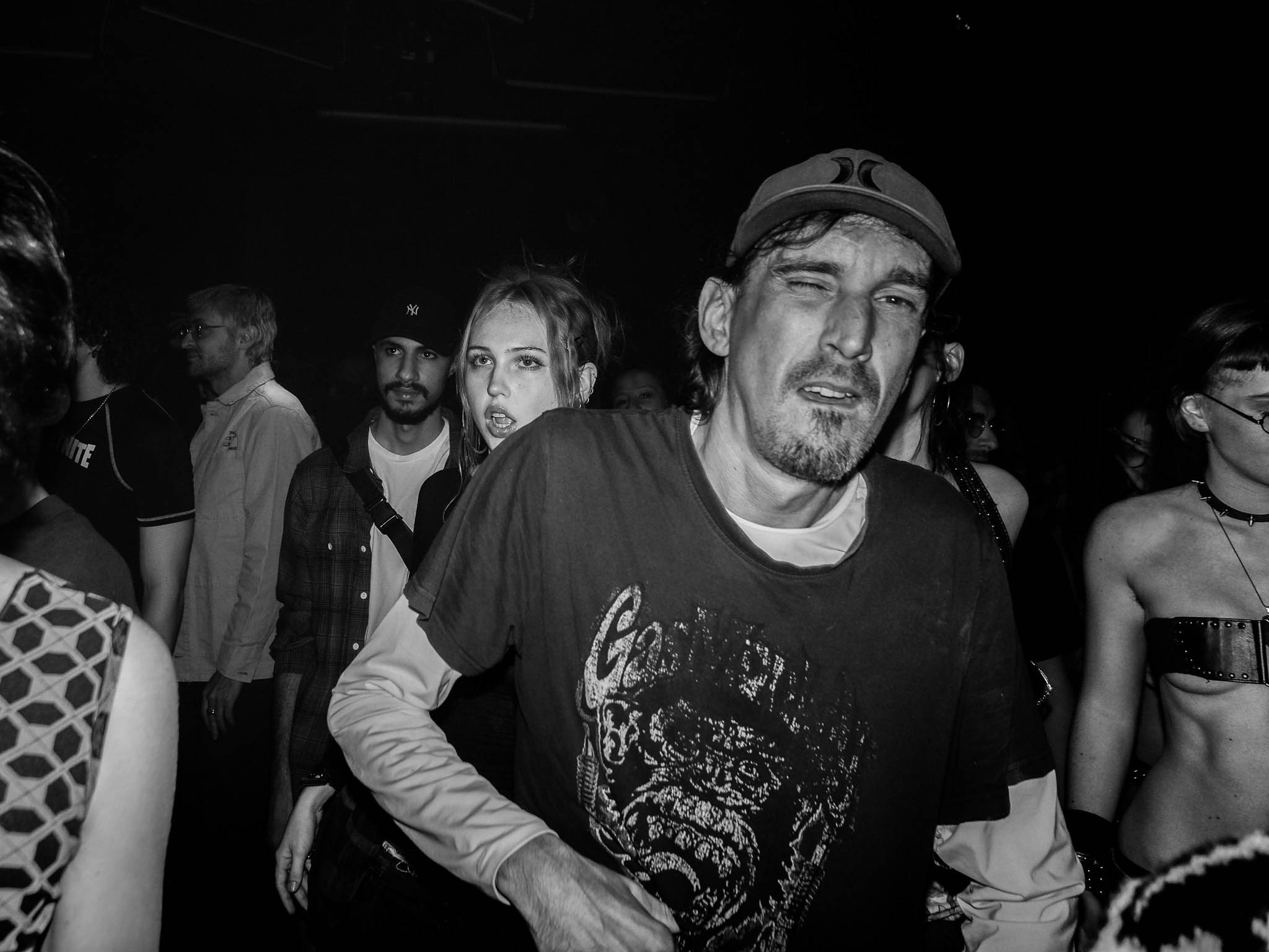 LX: I don’t really ploy. I have an idea of what I might wish to capture but once I'm actually in there, it's a totally overwhelming environment and I’m swept up in the bugswirl. I spend most of the night darting around— if I’m dancing, it’s usually because I’m dancing through the crowd towards something good. The thing is, at these parties the mood can change quickly; there’s an early lull, then all of a sudden someone is getting a tattoo by the bouncy castle, and then there’s an old dude to my left twerking on the floor and his acolytes are gathering, and then a really hot track drops and it’s alive. The moment decisif comes at me fast, so no, I can’t see what’s coming.
