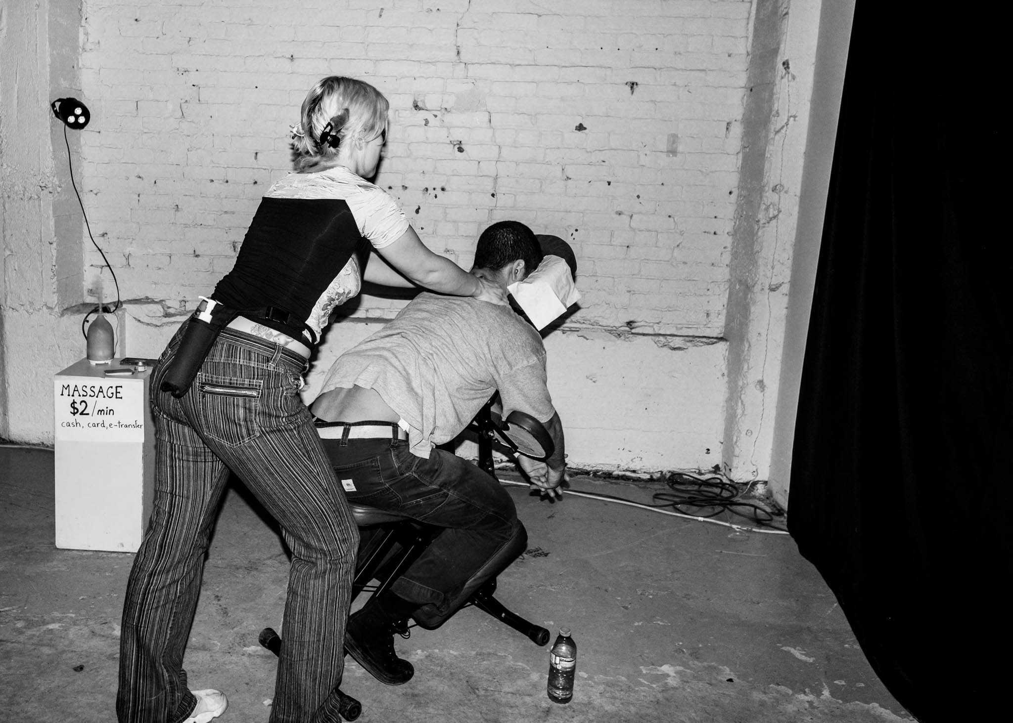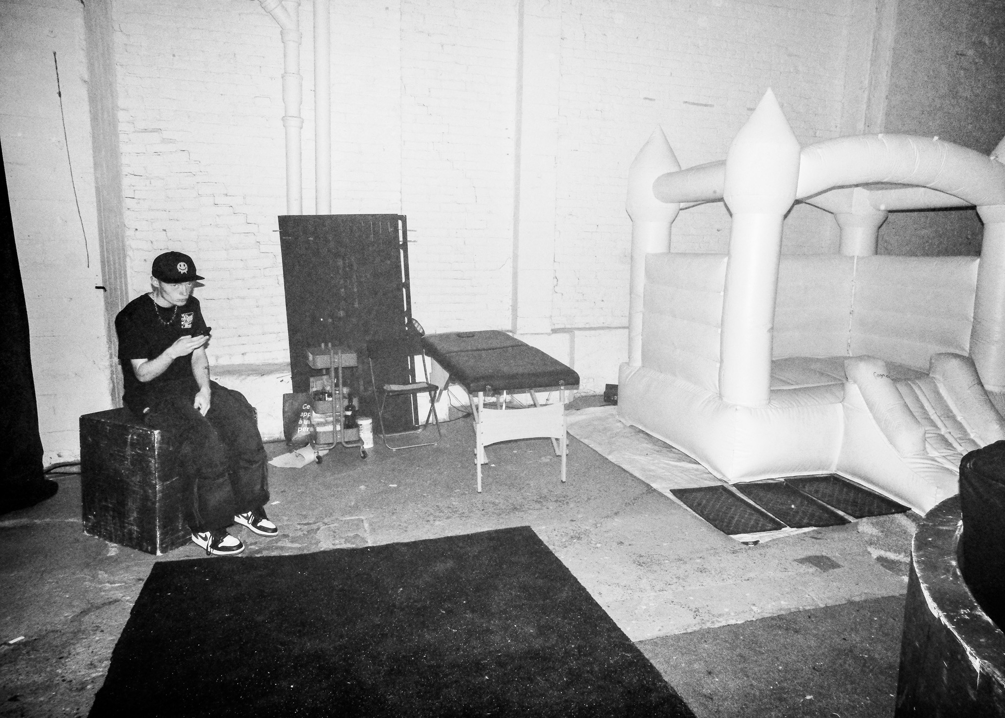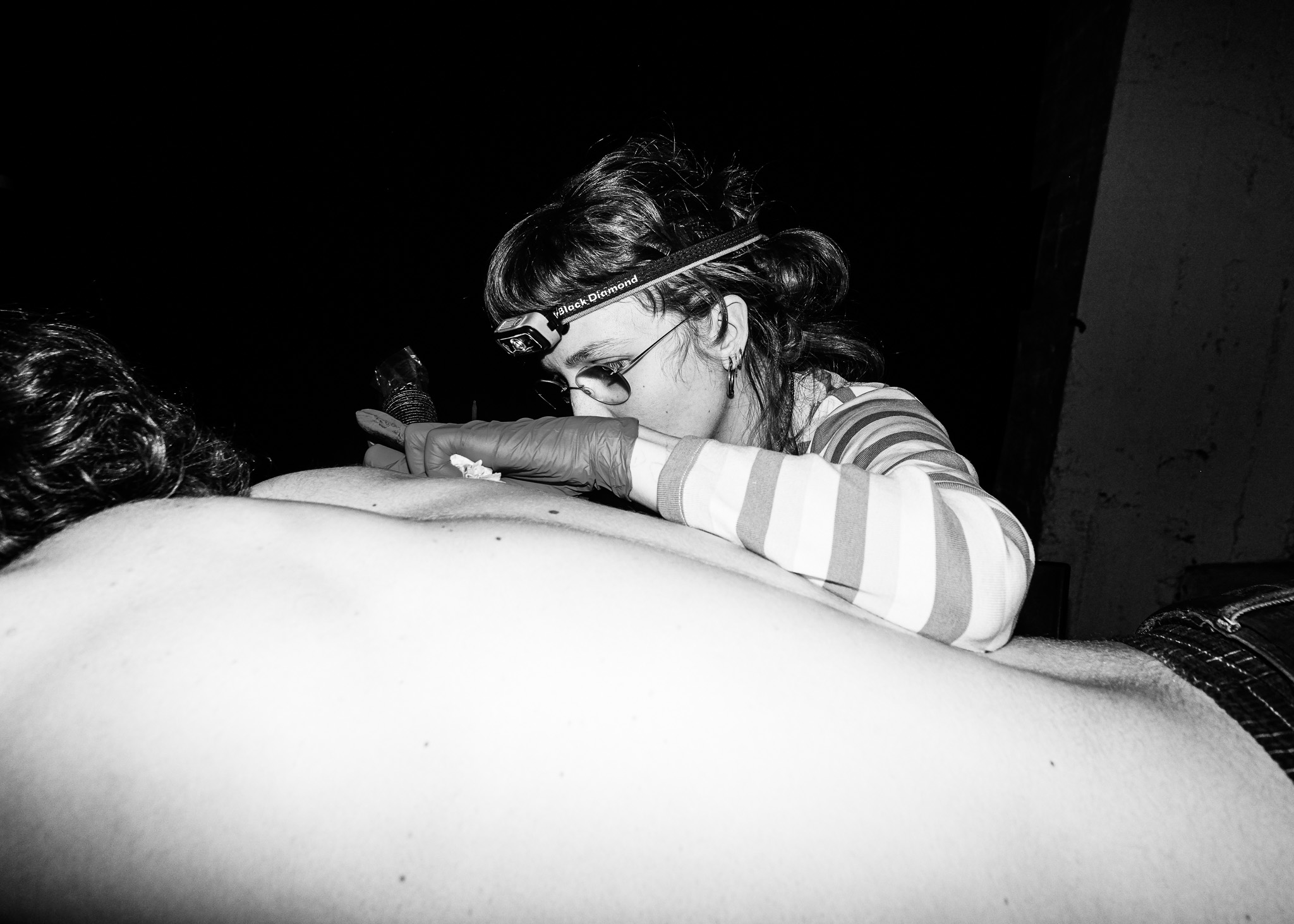 LX: I don’t really ploy. I have an idea of what I might wish to capture but once I'm actually in there, it's a totally overwhelming environment and I’m swept up in the bugswirl. I spend most of the night darting around— if I’m dancing, it’s usually because I’m dancing through the crowd towards something good. The thing is, at these parties the mood can change quickly; there’s an early lull, then all of a sudden someone is getting a tattoo by the bouncy castle, and then there’s an old dude to my left twerking on the floor and his acolytes are gathering, and then a really hot track drops and it’s alive. The moment decisif comes at me fast, so no, I can’t see what’s coming.