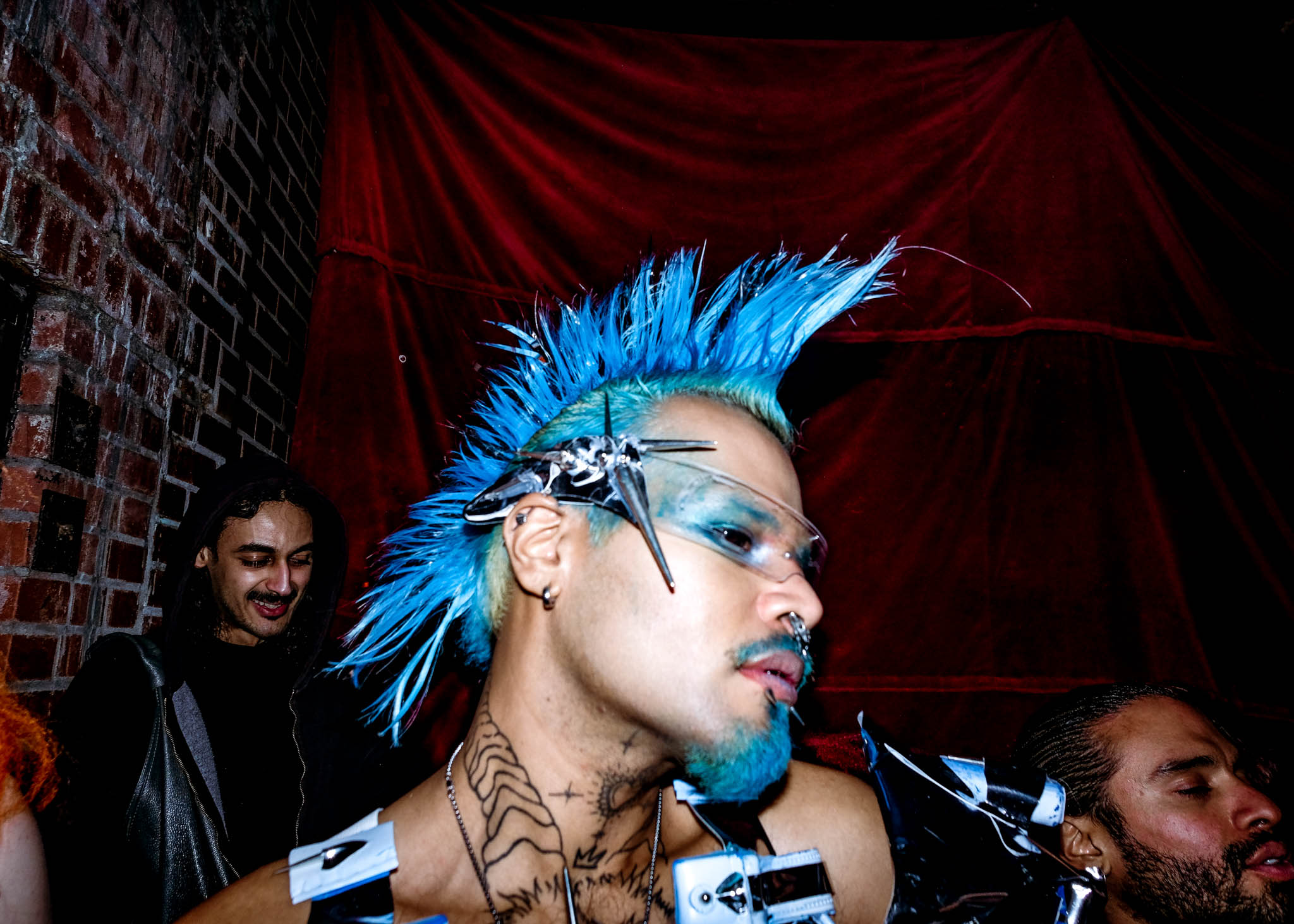 Vlessing came to rely on the very juxtaposition that initially daunted him. Into the mass of bodies buzzing and gyrating in the dark, in an event staged upon the premise of impulsive, senseless expression, he approached [these] dissident disco raves with the poetry and soul of a street photographer. [...] Absurdity, he insists, exists next to glamour as its equal. Amid the excess of the personas he encounters and the guarded fronts they project, Vlessing watches for the moments when beauty takes on a theatrical quality, which he finds mostly in the borderlands between the crowd’s real and imagined personas, when the mundane flirts with the euphoric, and self-consciousness wrestles with total abandon [...] by reckoning with these seeming opposites and holding them in equal measure, we earn our way into life’s sweetness. Then we rejoice among the shining faces. Then we join in the hypnotizing rhythm of bodies animated by all that terrific beauty.