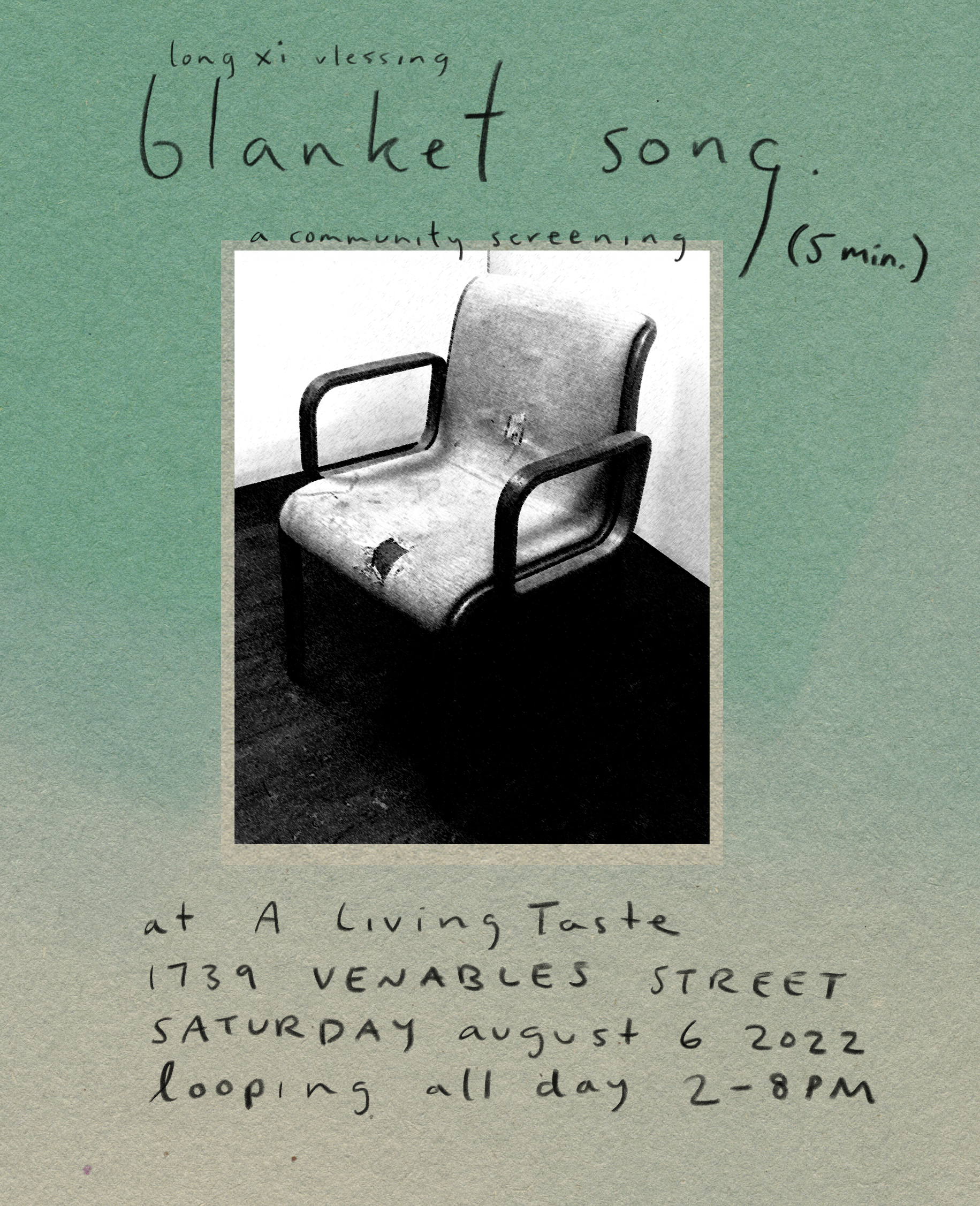 Site-specific installation and community screening. August 6, 2022. A Living Taste Gallery, Vancouver.