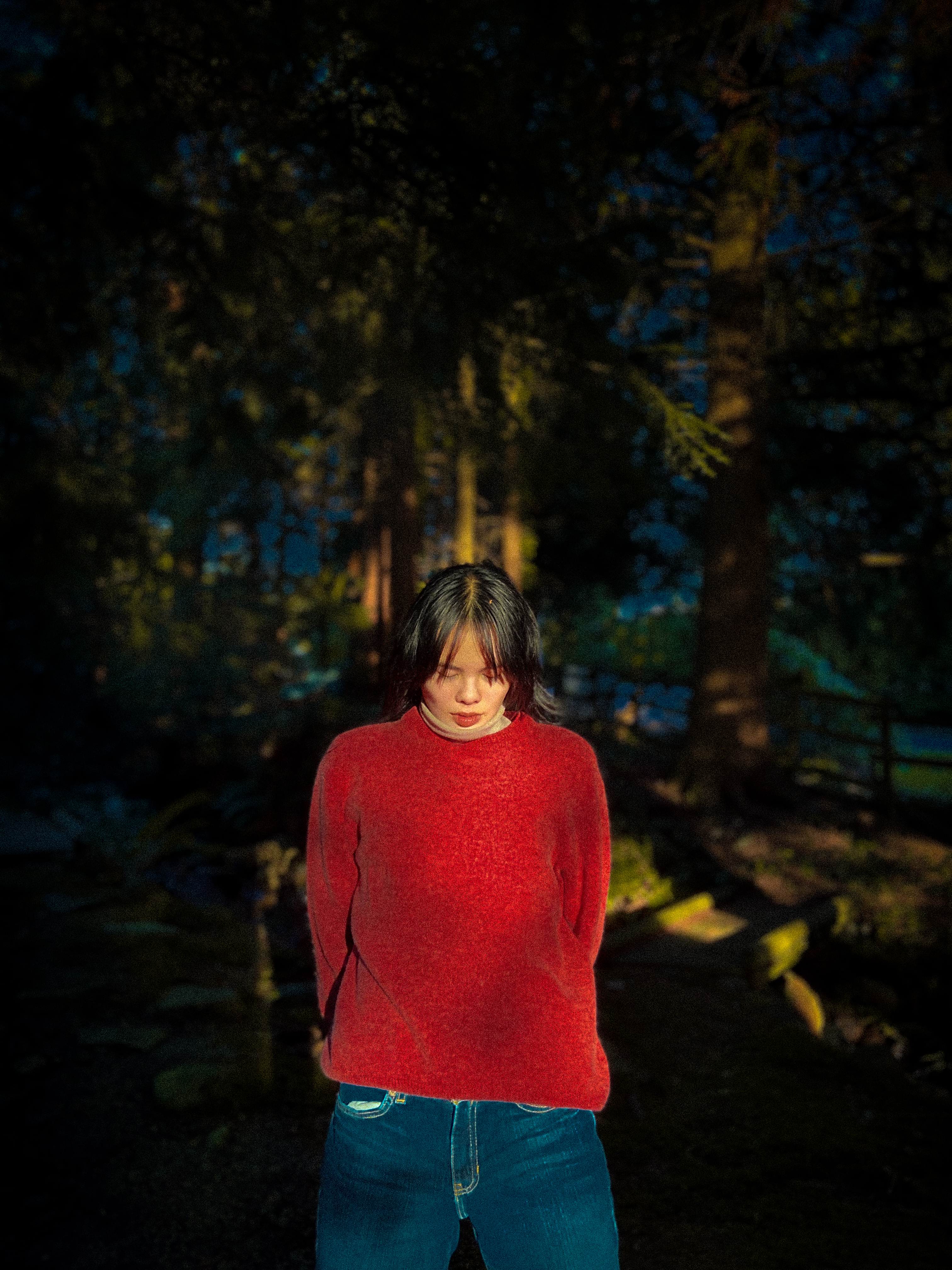 as it sinks beneath the pines. In the house, she drifts off slowly.